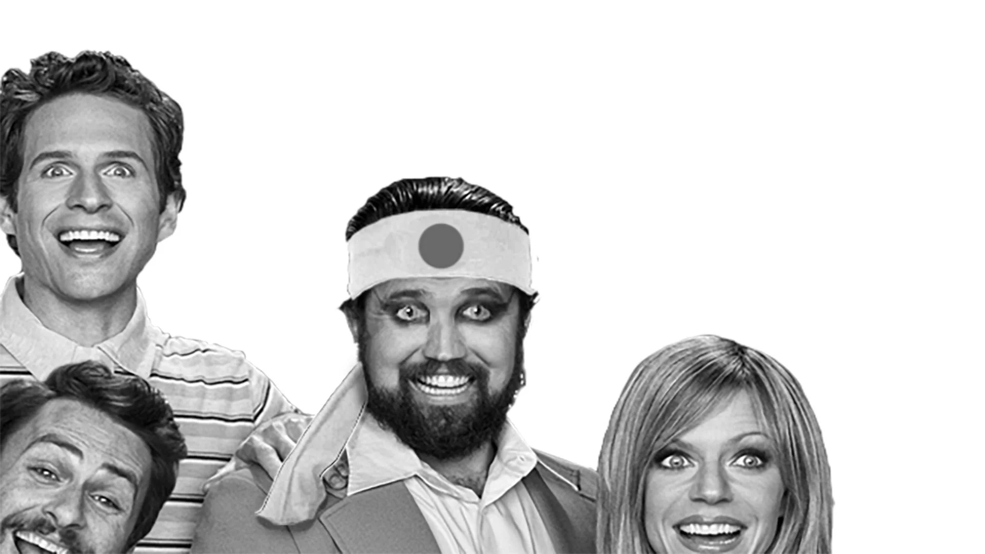 I took the original promotional image the show had and made it black and white. After that, I went into each character and added a distinct element that the character is iconic for to show how crazy they are compared to their “normal” photo.